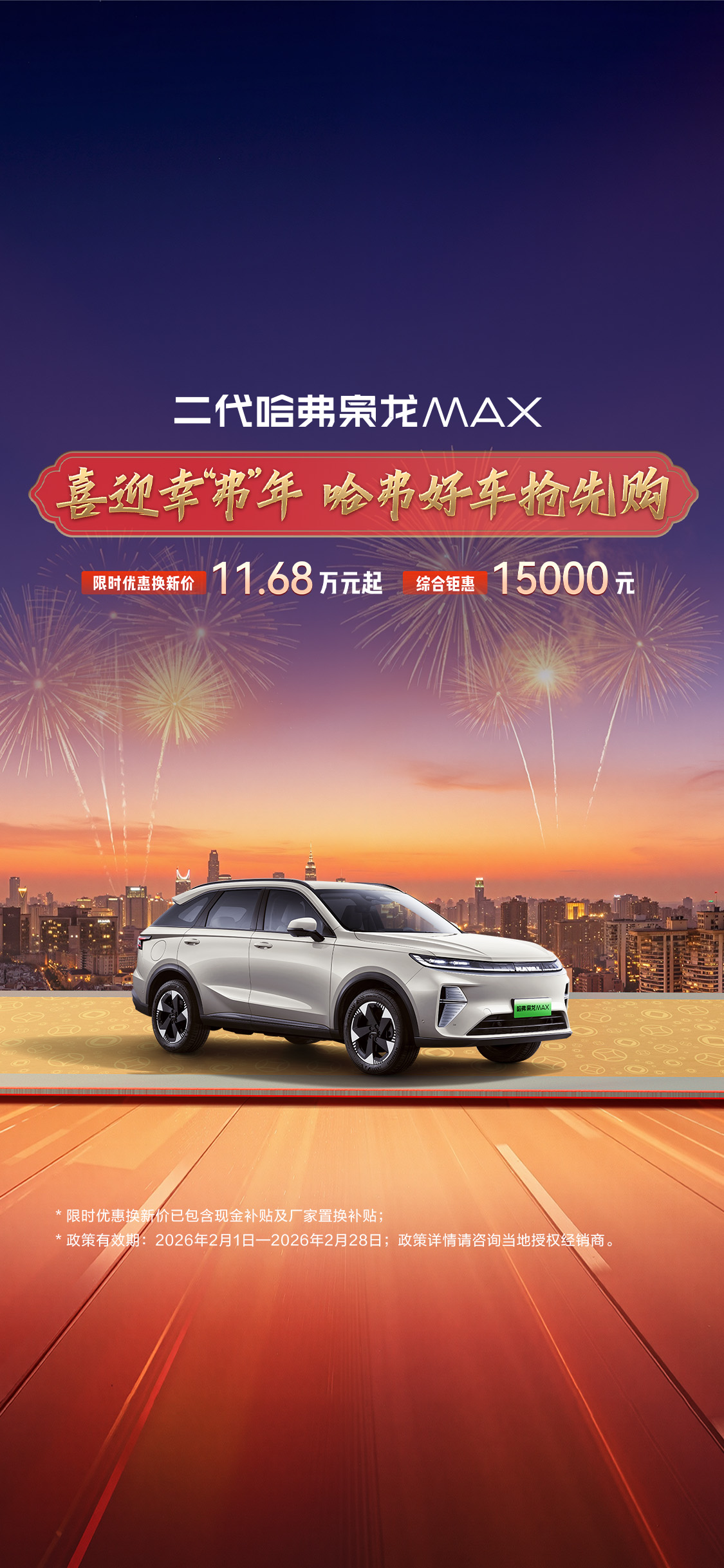 ⑥以上权益阻止时间:2026年2月28日(24:00前开具购车发票),详qing咨询当地授权经销商。